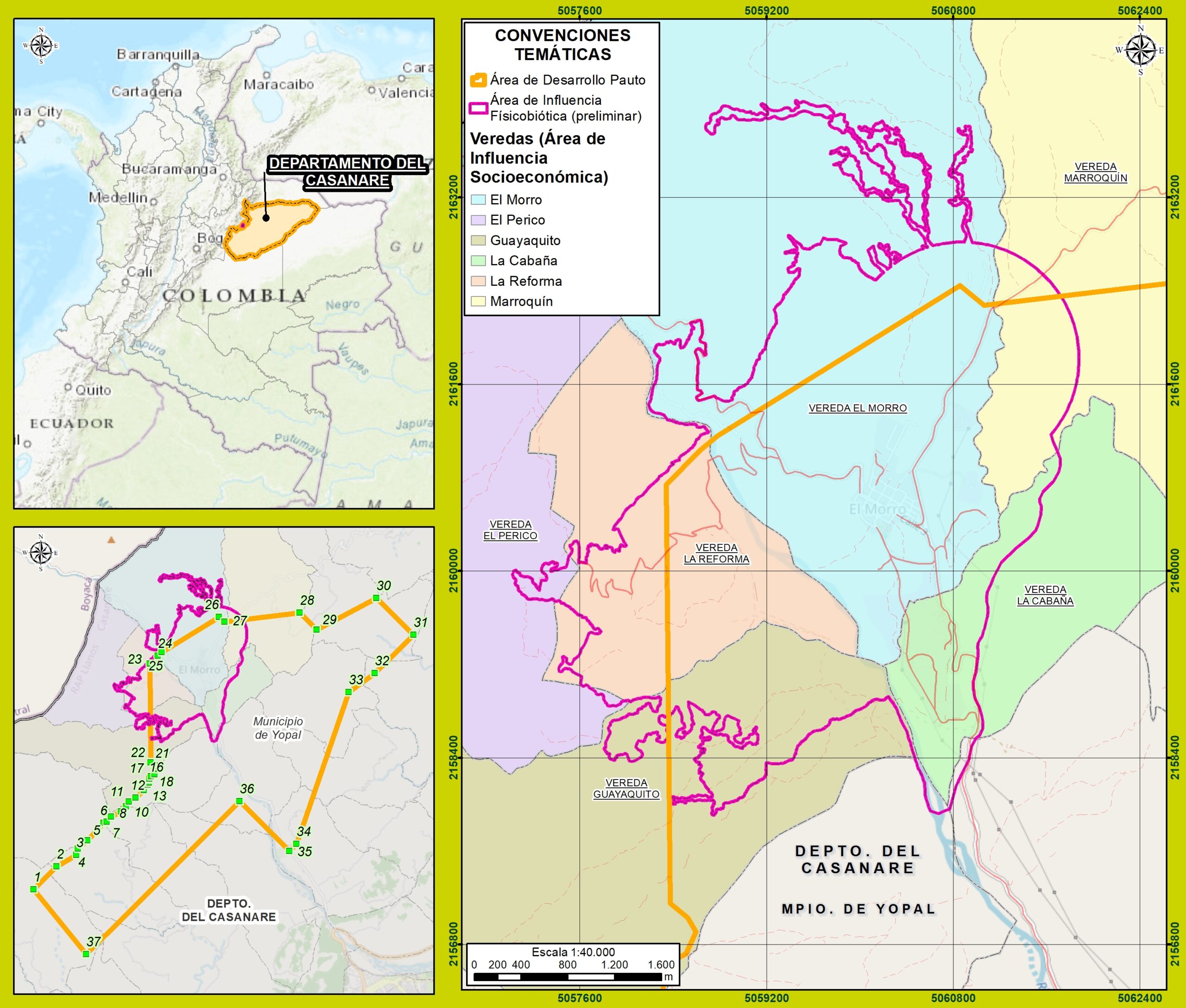 El Estudio de Impacto Ambiental – EIA requerido para la modificación de la licencia ambiental del Área de Desarrollo Pauto, se ubica en el municipio de Yopal, departamento del Casanare, bajo la jurisdicción de la autoridad ambiental Corporinoquia.